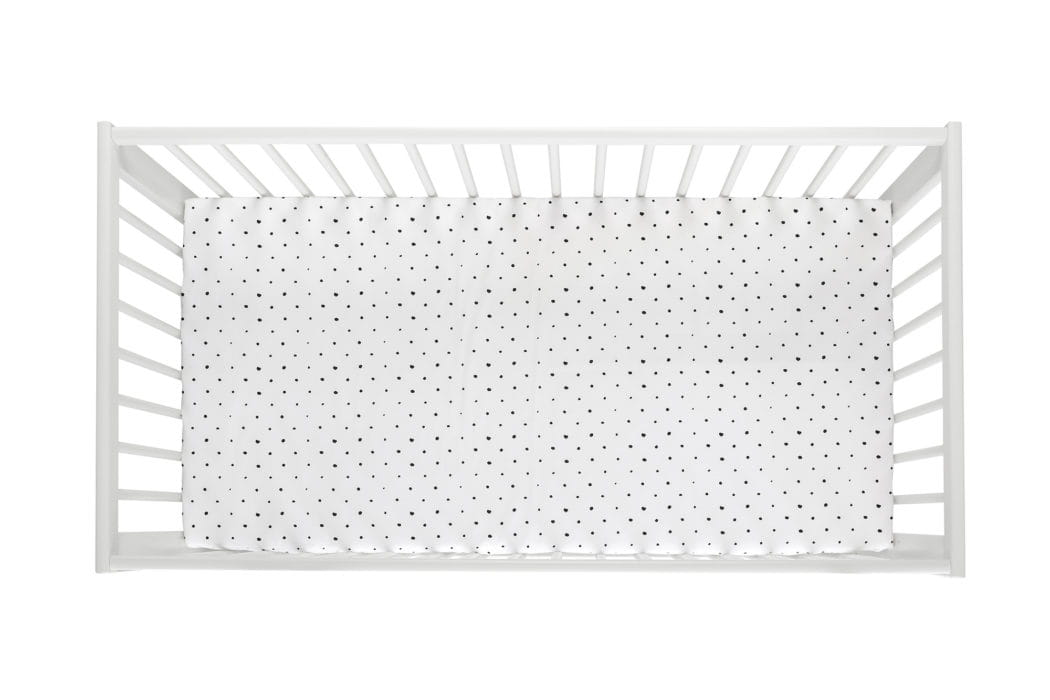 Ujmujący, uniwersalny wzór w nieregularne czarne kropeczki wpisuje się w najgorętsze trendy sezonu, a certyfikowana bawełna organiczna użyta do jego produkcji daje pewność najwyższego poziomu bezpieczeństwa dla twojego dziecka.
